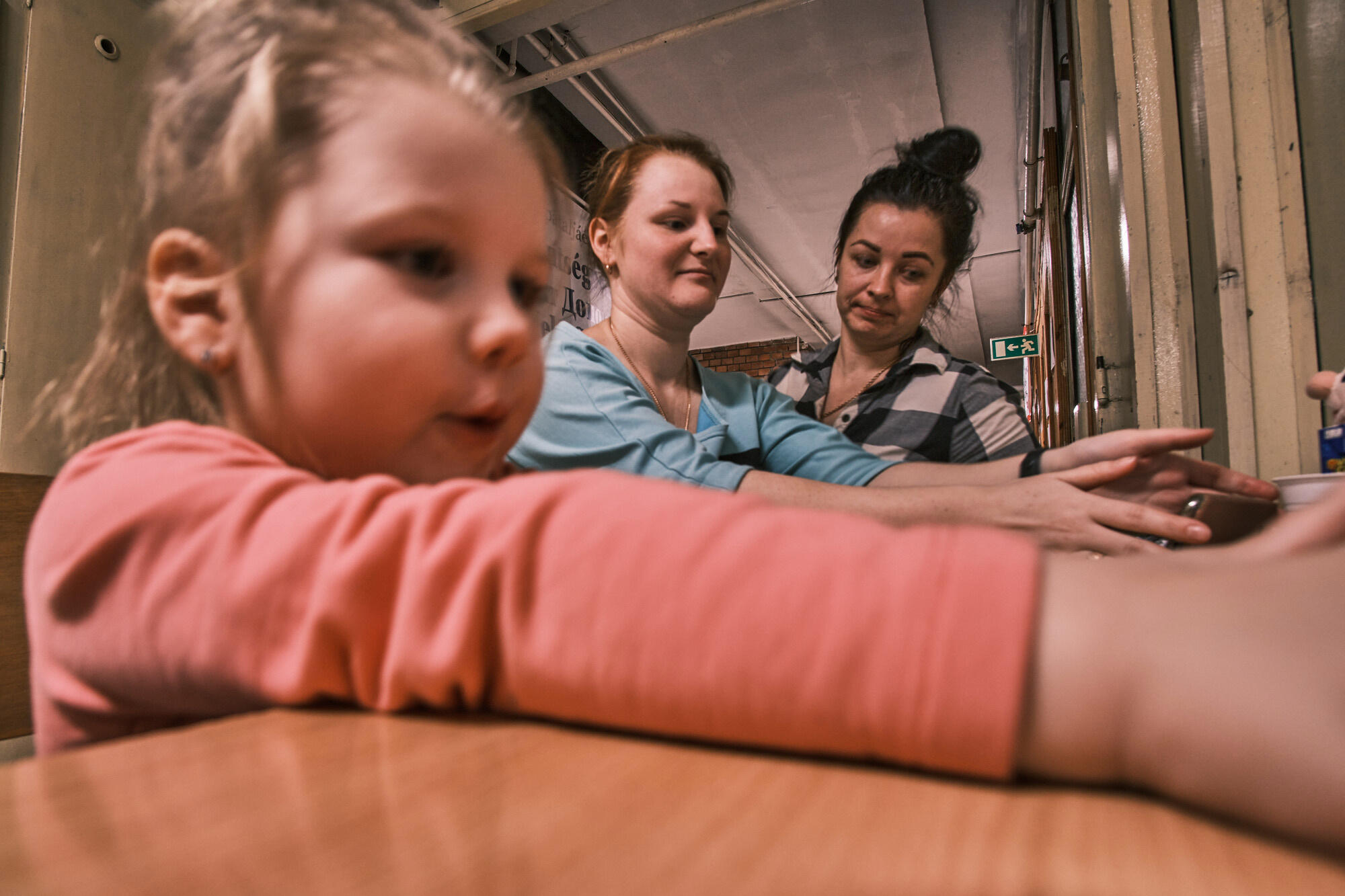 Sofiia, Oksana and Iryna just arrived from their hometown Ternivka, Ukraine, to the shelter in Záhony, Hungary.